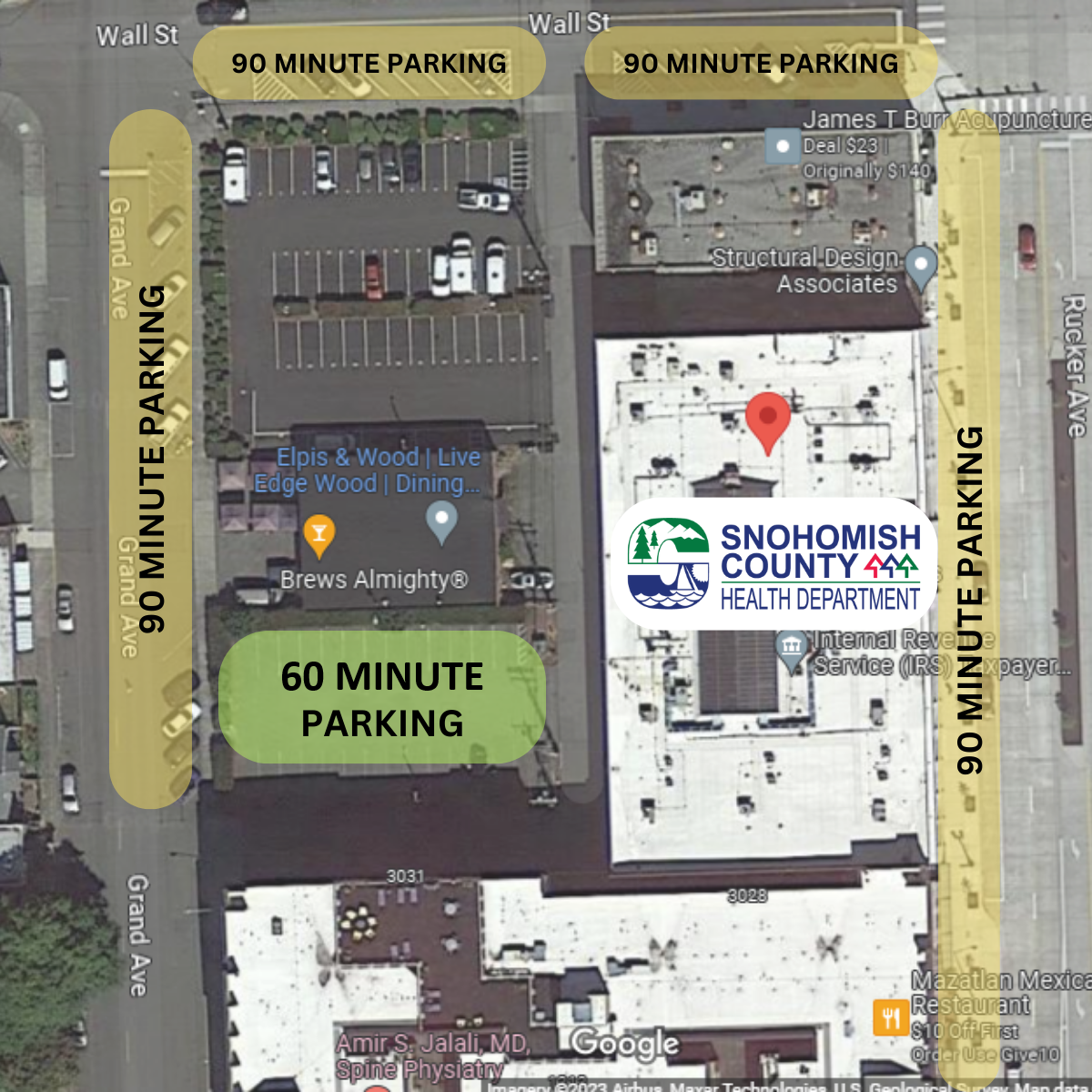 Parking: Street parking available around the Health Department or in the back parking lot.