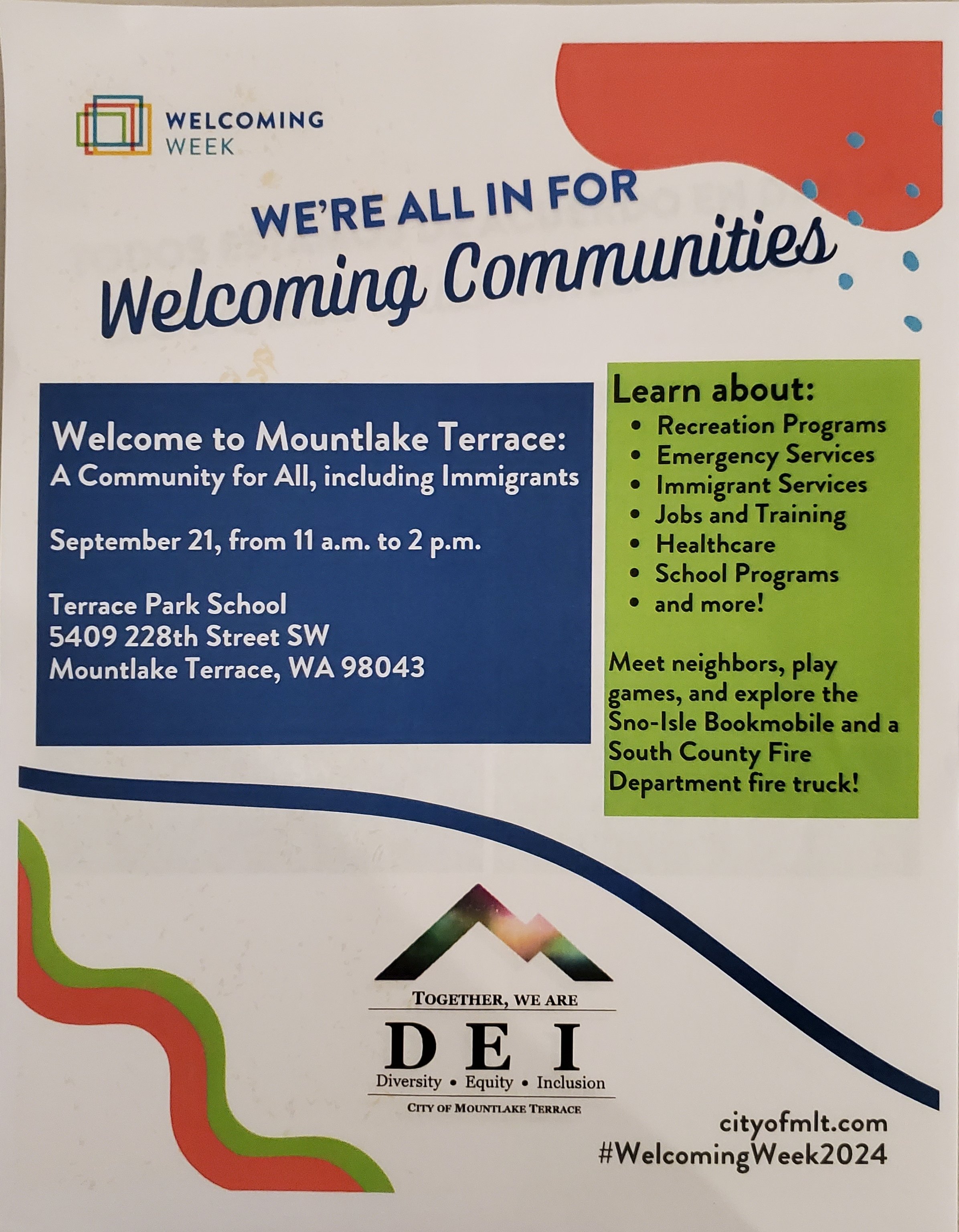MRC will be participating at the Welcome to Mountlake Terrace: A Community for All, including Immigrants event.